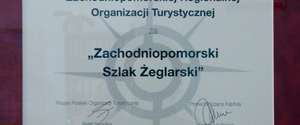 2014-10-27 Zachodniopomorski Szlak Żeglarski wyróżniony przez POT Polska Organizacja Turystyczna (POT) umieściła sieć zachodniopomorskich przystani jachtowych Zachodniopomorski Szlak Żeglarski wśród 10 najlepszych polskich produktów turystycznych.